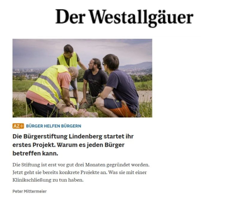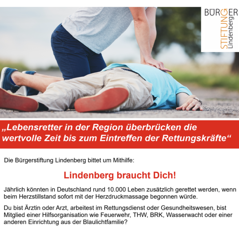 Mit der Initiative „Lebensretter“ möchte die Bürgerstiftung Lindenberg dazu beitragen, die Überlebenschancen bei Herzinfarkten und Herzstillständen in Lindenberg deutlich zu verbessern.